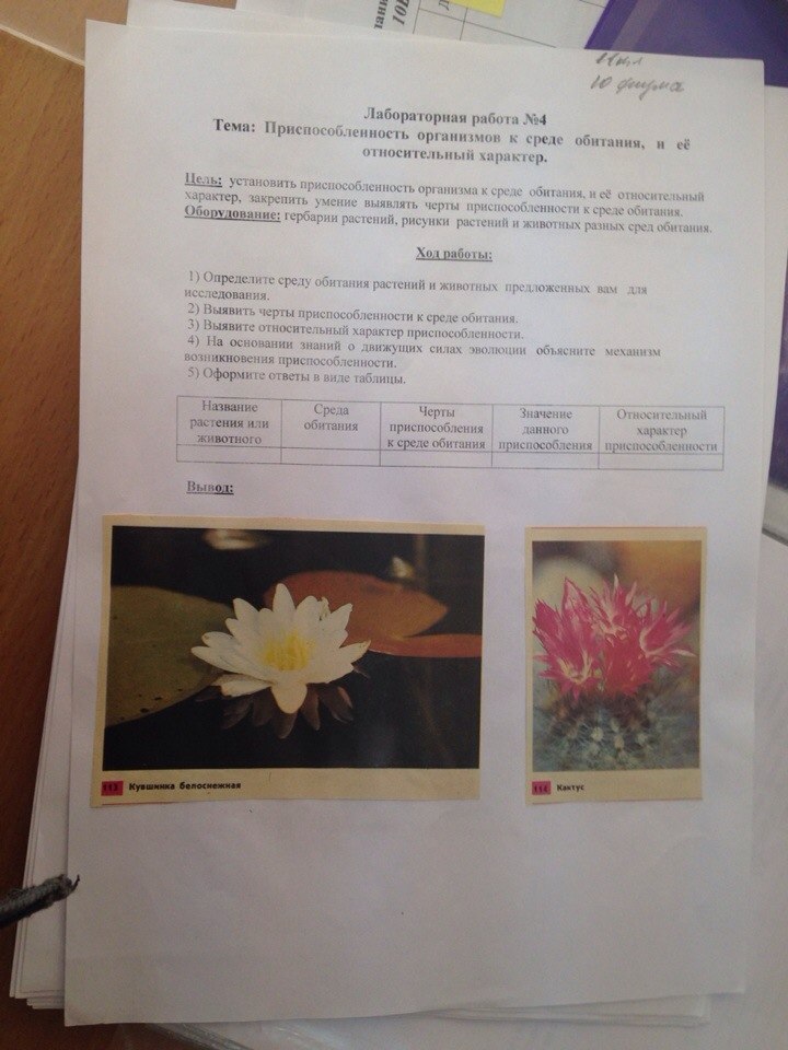 Немного поправлю предыдущего отвечающего) У кувшинок или кубышек и, вообще, у водных высших растений механическая ткань редуцирована не полностью) Основное приспособление в среде обитания кувшинки - это удлиненный стебель и крупные кожистые листовые пластинки. По поводу кактуса - не было сказано о значении ребристой поверхности стебля, так вот, она так же помогает растению уменьшить лишнее испарение влаги и защита от перегрева. А так же необходимо отметить, что устьица функционируют только ночью