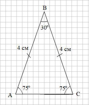 ∠В = 180° - (∠А + ∠С) = 180° - (75° + 75°) = 30°