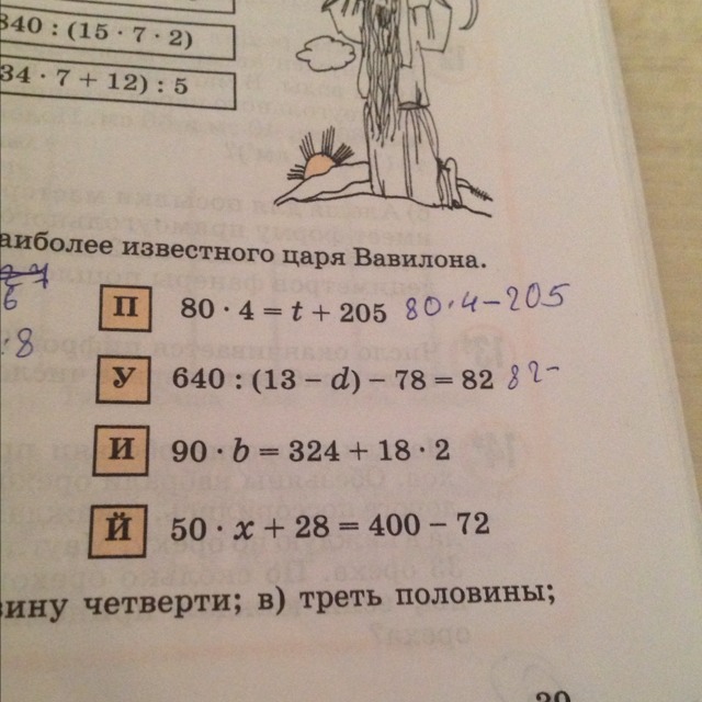 80·4=t+205 640:(13-d)-78=82 90·b=324+18·2 50·x+28=400-72