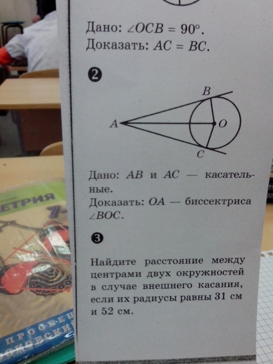 дано ab и ac касательные доказать oa биссектриса угол boc
