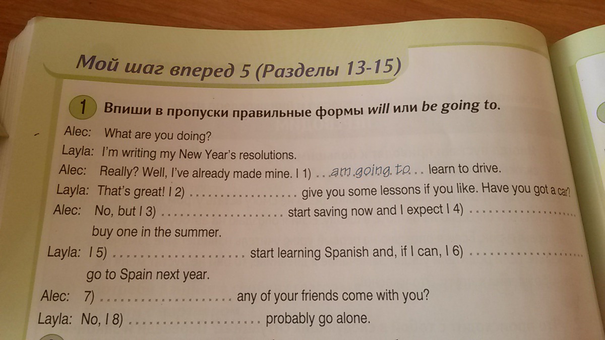 Впишите в пропуски формы will или be going to, задание ( фото ) ниже, заранее большое спасибо)