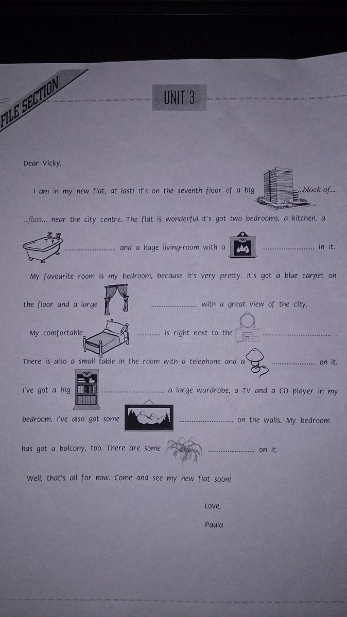 I (0)__am__ in my new flat, at last! It’s on the seventh (1) ________ of a