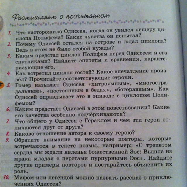 в 4 вопросе после встречи циклоп захотел съесть своих гостей