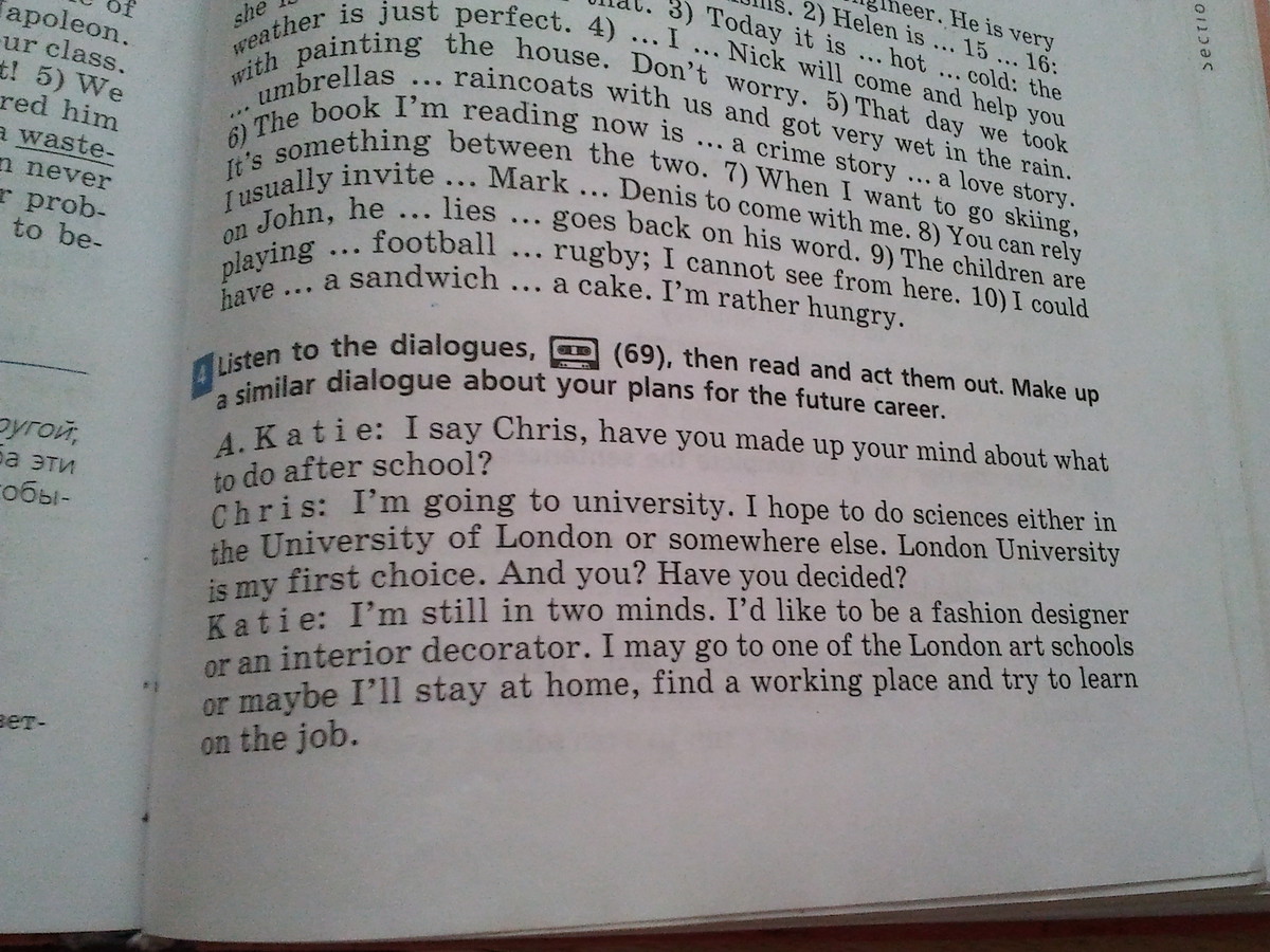 Прошу помогите мне умоляю!!Нужно составить подобный диалог о планах на будущее, карьеру.(Во вложениях пример диалога)