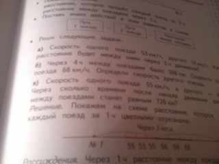 Через 4 ч между поездами было 596 км. Скорость одного поезда 68км/ч. Определи скорость другого поезда? Помогите пожалуйста!!!