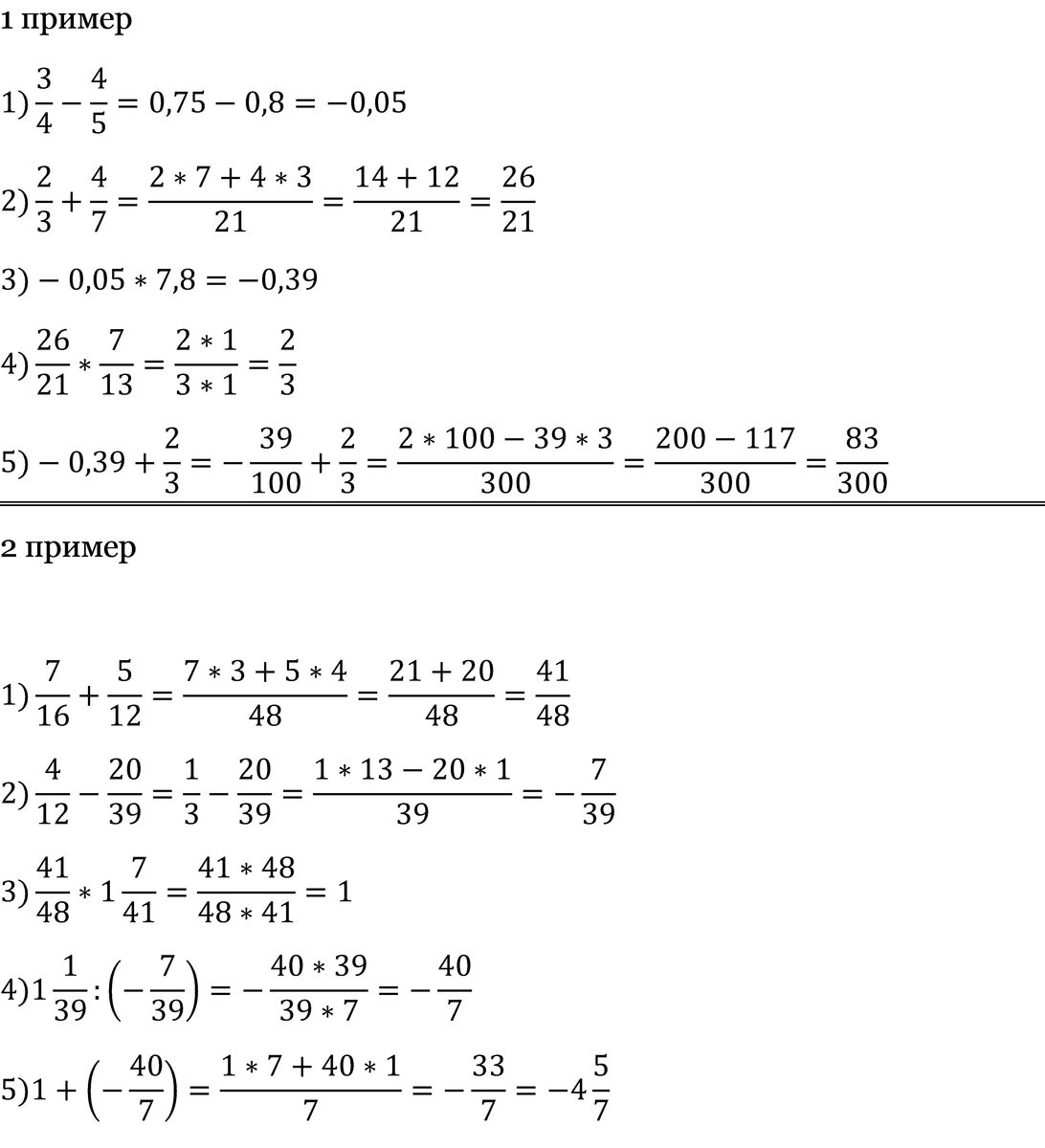 :-это деление /-это дробь a)(3/4-4/5)*7.8+(2/3+4/7)*7/13 б)(7/16+5/12)*1целая7/41+1целая1/39:(4/12-20/39)