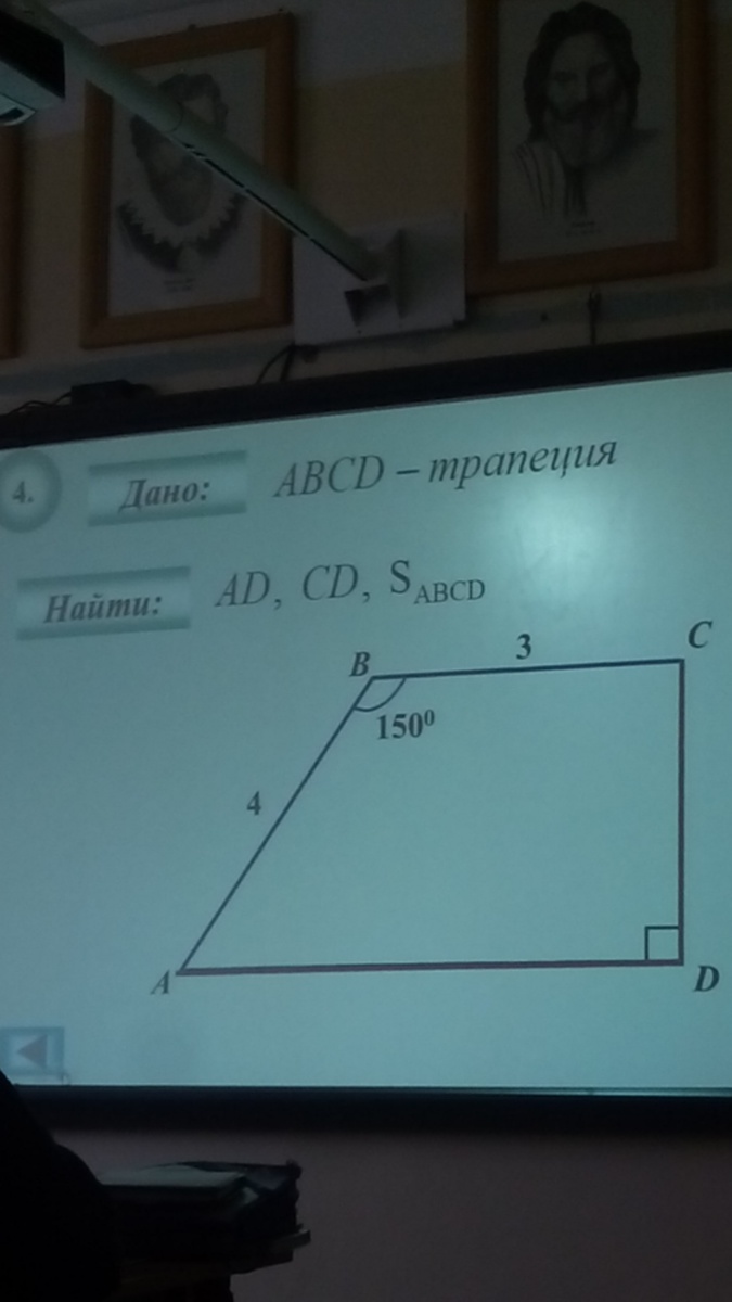 В полученном прямоугольном треугольнике ВН будет = 2 т к это катет лежащий против угла в 30 гр. СД=ВН=2