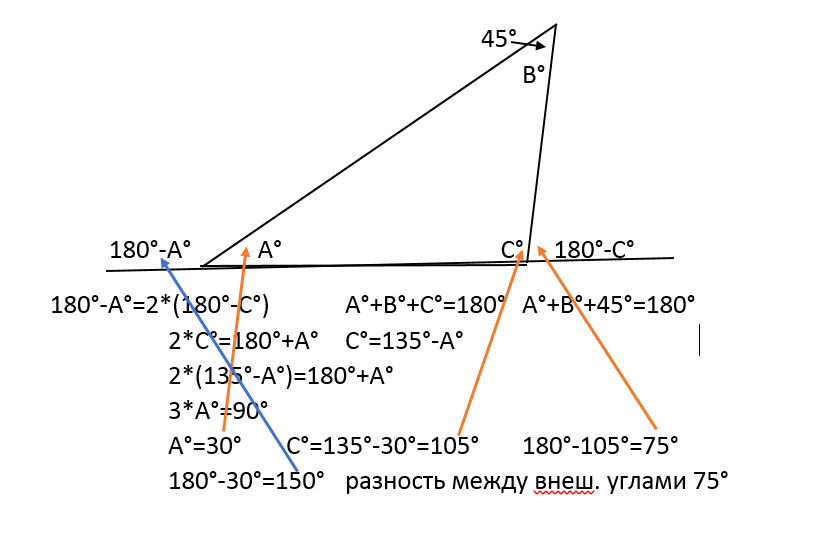 разность между внеш. углами 75°