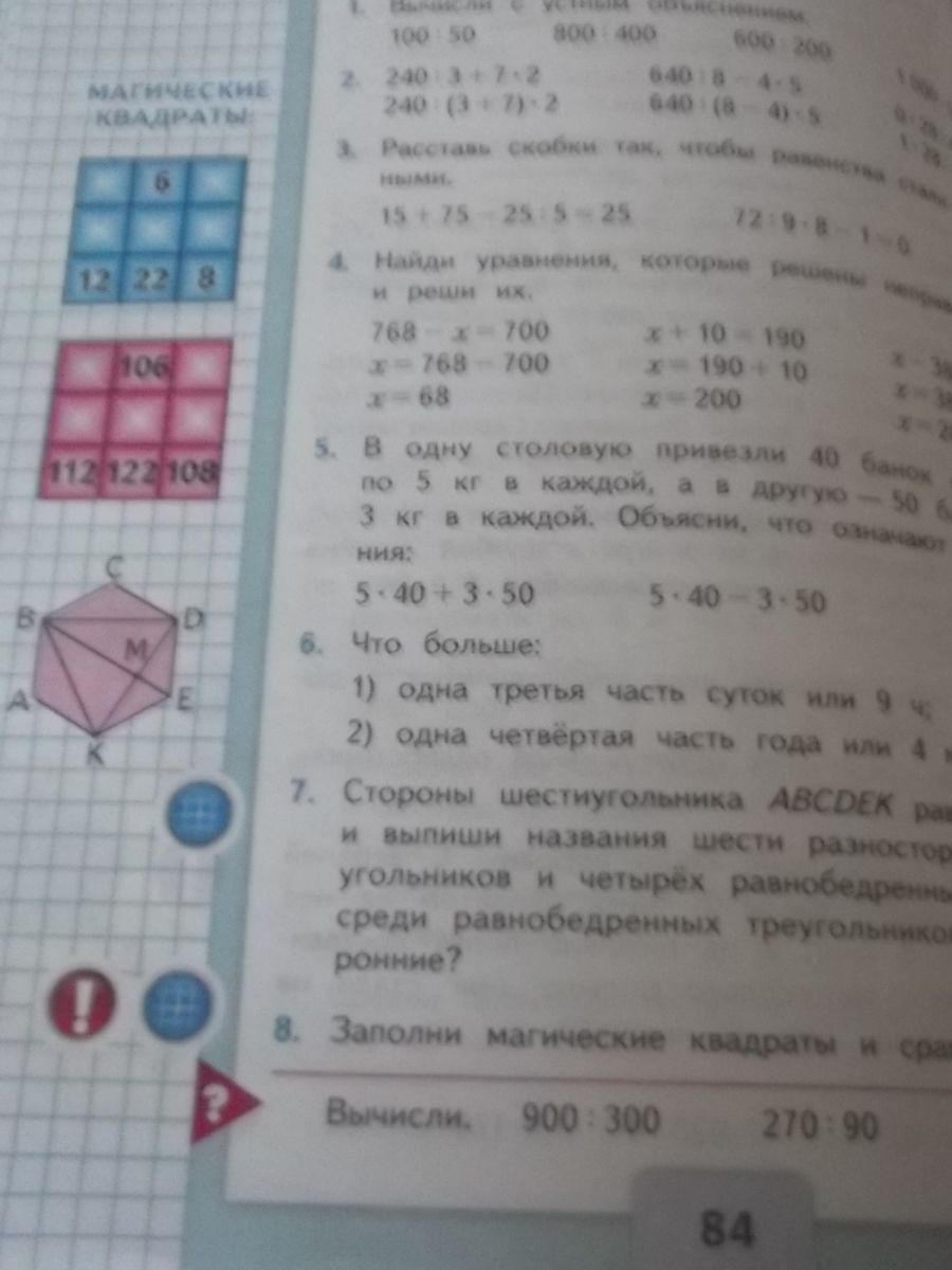 № 8 Заполни магические квадраты и сравни их. Они на клеточках . Надо срочно помогите!! Д/З делаю
