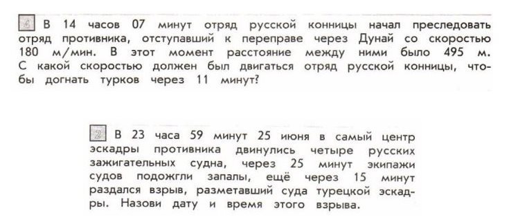 пожалуйста СРОЧНо выполните эти задачи хотя бы одну( 1)Отряд добровольцев проник в турецкий лагерь в 0 ч 45 мин ,чтобы перерезать подпруги у лошадей и канаты шатров .За 1 ч 35 мин нужно было выполнить задание ,и,двигаясь по-пластунски со скоростью 25 м/мин,отойти от лагеря на 950 м и сразу же подать сигнал русским войскам.через три четверти часа после этого русским войскам следовало атаковать.в какое время должна была начаться атака русских? 2)в14 часов 07 минут отряд конницы начал преследовать отряд противника,отступавший к переправе через Дунай со скоростью 180м/мин . в этот момент расстояние между ними было 435 м. с какой скоростью должен был двигаться отряд русской конницы,чтобы догнать турков через 11 минут? 3)в 23 часа 59 минут 25 июня в самый центр эскадры противника двинулись четыре русских зажигательных судна,через 25 минут раздался взрыв,разметавший суда турецкой эскадры. назови дату и время этого взрыва. 4)экипажи зажигательных русских судов успели уйти на шлюпках . Через 18 минут они прошли 2/3 растояния до берега.сколько времени им оставалось двигаться,если скорость их движения не изменилась? 5)в военном походе 1696 года русский флот потерял на 18 кораблей меньше,чем турецкий флот в Чесменской бухте.Сколько кораблей потерял каждый из флотов ,если русские потеряли в 7 раз меньше кораблей,чем турки? 6)для подготовки к штурму Измаила русскими солдатами была построена земляная крепость.для постройки одного из бастионов высотой 25 м требовалось несколько солдатских команд.каждая команда могла возвести этот бастион за 50 дней.сколько таких команд следовало назначить на строительство бастиона,чтобы выстроить его за 10 дней?