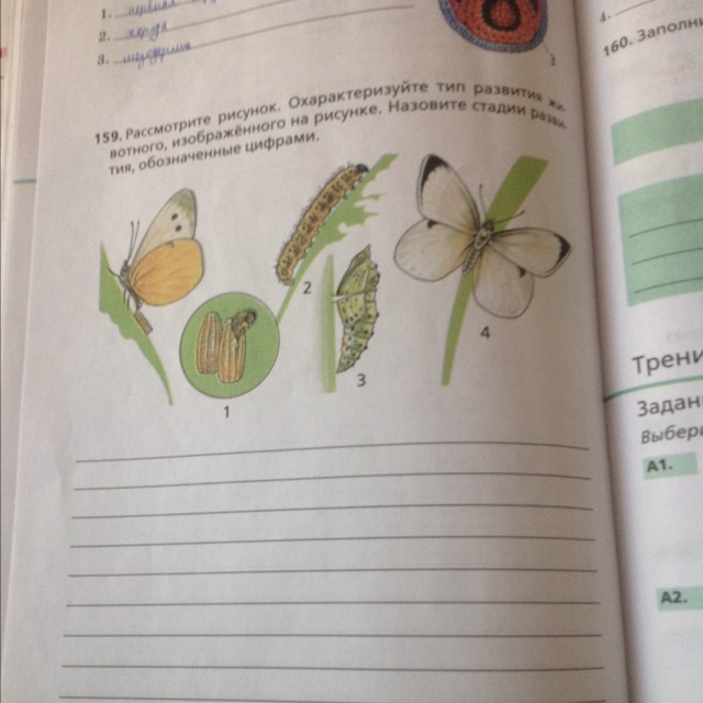 развитие с полным метаморфозом : бабочка откладывает яйца, из них развивается личинка, после появляется куколка, потом она становиться имаго-взрослым насекомым.