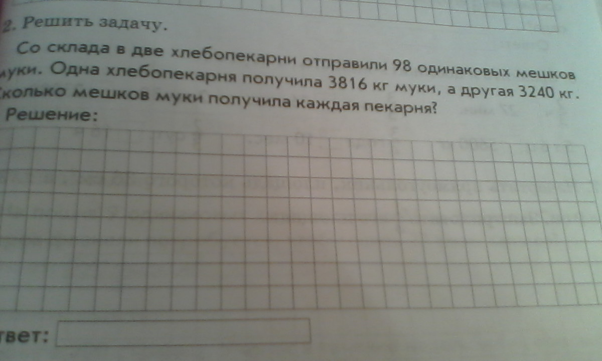 1) 3816 кг+3240 кг=7056 кг -было отправлено на 2 пекарни вместе