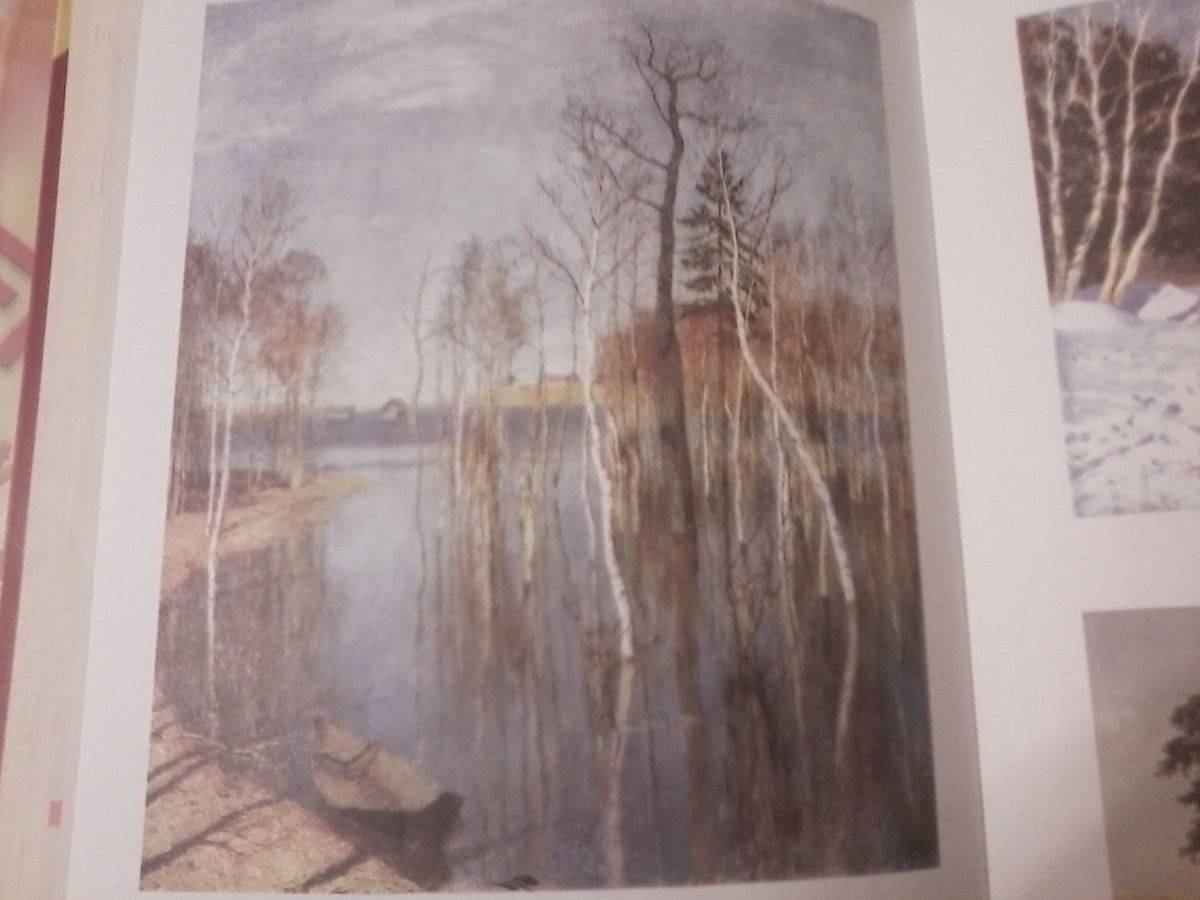Передо мной картина на которой изображено весеннее утро или день.Прохладный ветерок развивает деревья,рядом изображена речка,на речке стоит,маленькая лодочка.Из долека веднеются деревенские дома.Мне очень понравилась картина,когда на неё смотришь сказу раслобляешься.