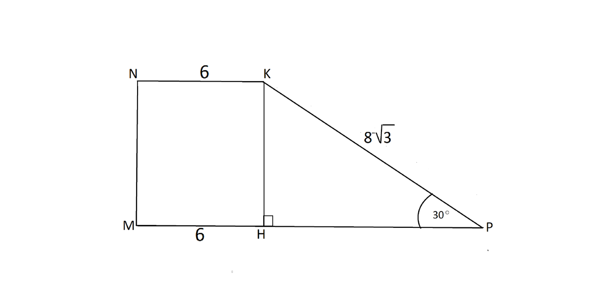 острый угол Р прямоугольной трапеции MNKP равен 30 градусам, большая боковая сторона равна 8 корней из 3 см,а меньшее основание трапеции равно 6 см. найдите площадь трапеции