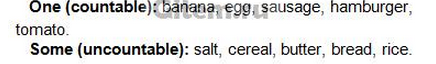 один (исчисляемые) банан, яйцо, сосиска, гамбургер, помидор(томат)