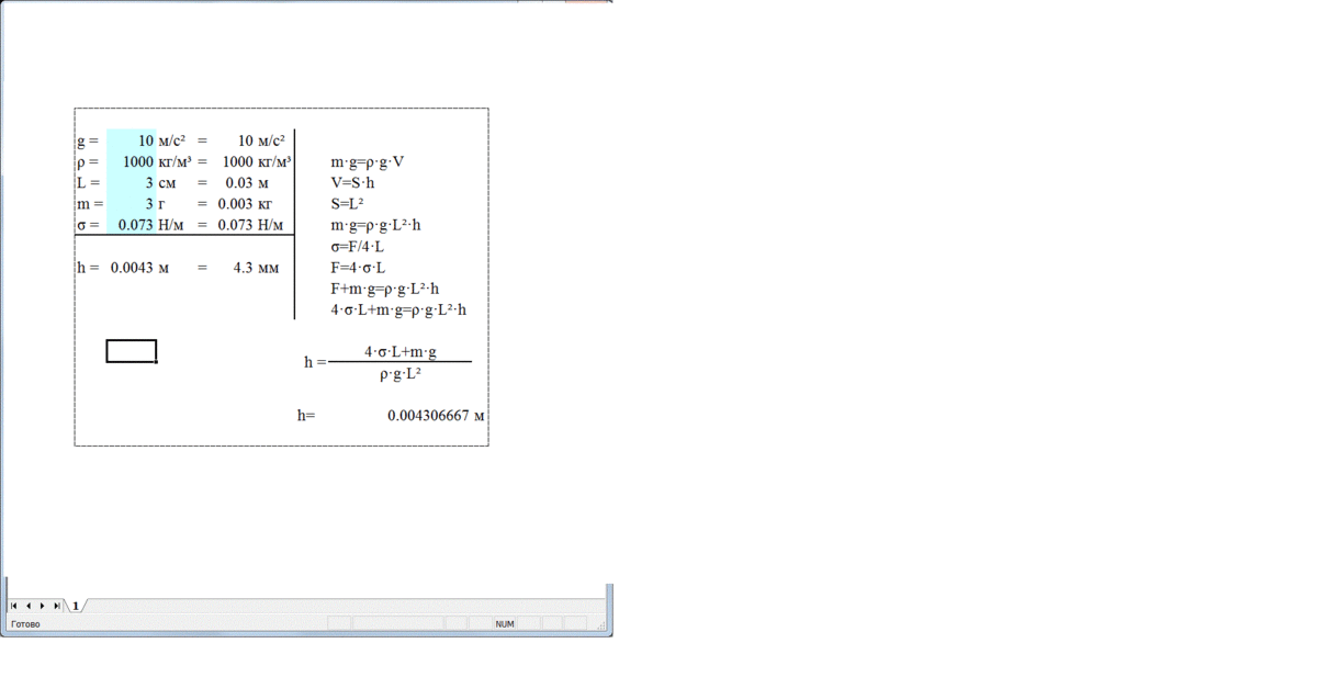 h = (4·σ·L+m·g)/( ρ·g·L² )