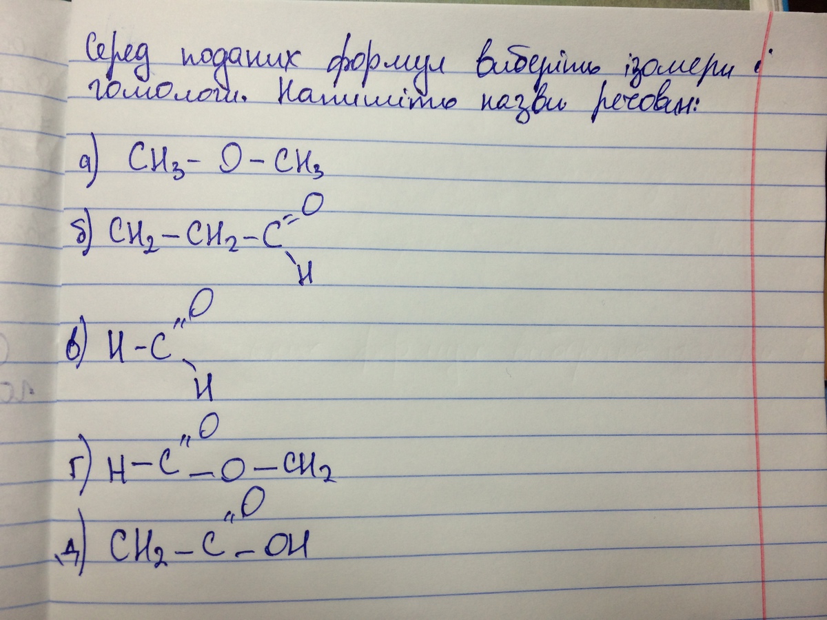 Среди представленных формул выберите изомеры и гомологи. Напишите названия веществ: