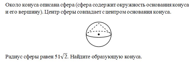 расстояние от центра конуса к вершине рано радиусу, расстояние от центра конуса до его края тоже радиус, т.е. образующая по теореме пифагора