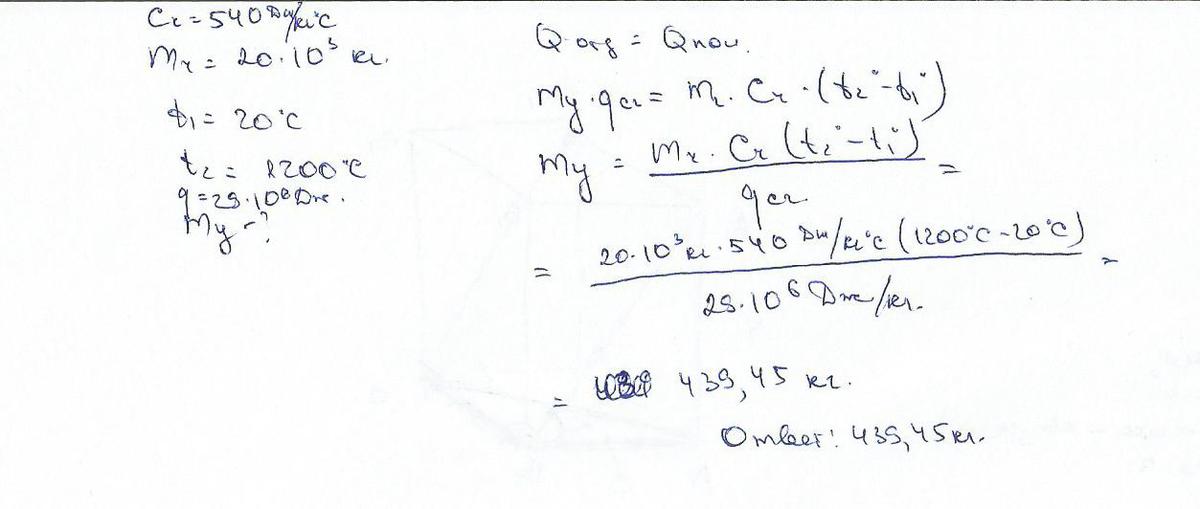 20 тонн чугуна нагрели в печи от 20градусов до 1200 градусов. сколько для этого нужносжечь каменного угля