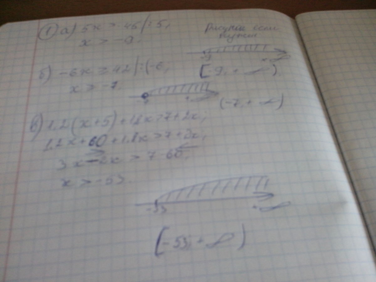 а) 5х > – 45; в) 1,2(х + 5) + 1,8х > 7 + 2х.