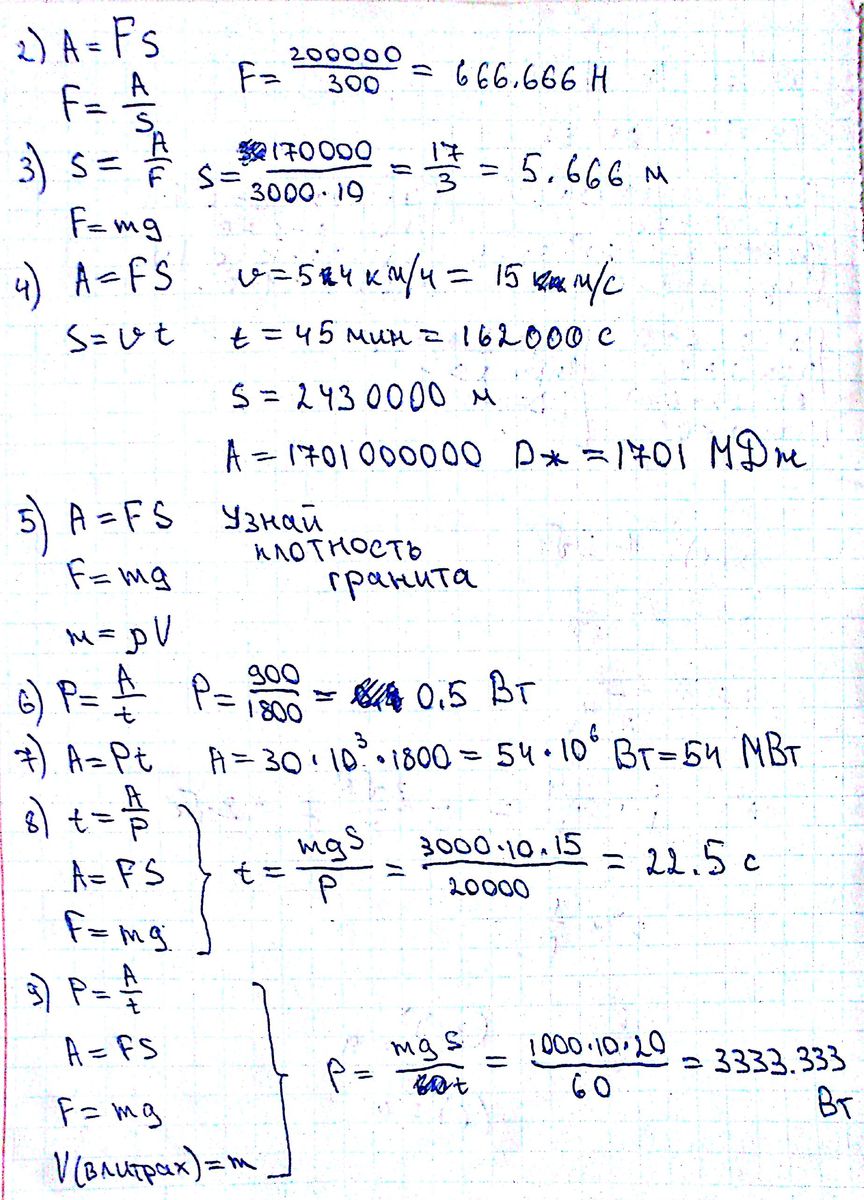 2. Чему равна сила, выполняющая работу 200 кДж на пути 300 м?