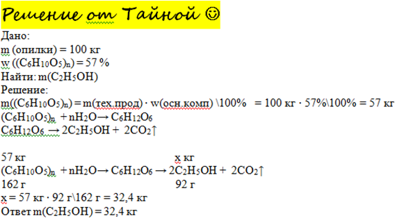 находим массу целлюлозы m(C6H10O5) = 100*0,57 = 57кг = 57000 г