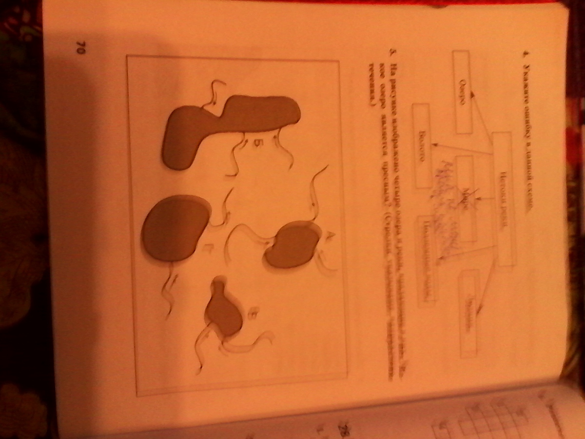 На рисунке - четыре озера и реки, впадающие в них. Какое озеро пресное?