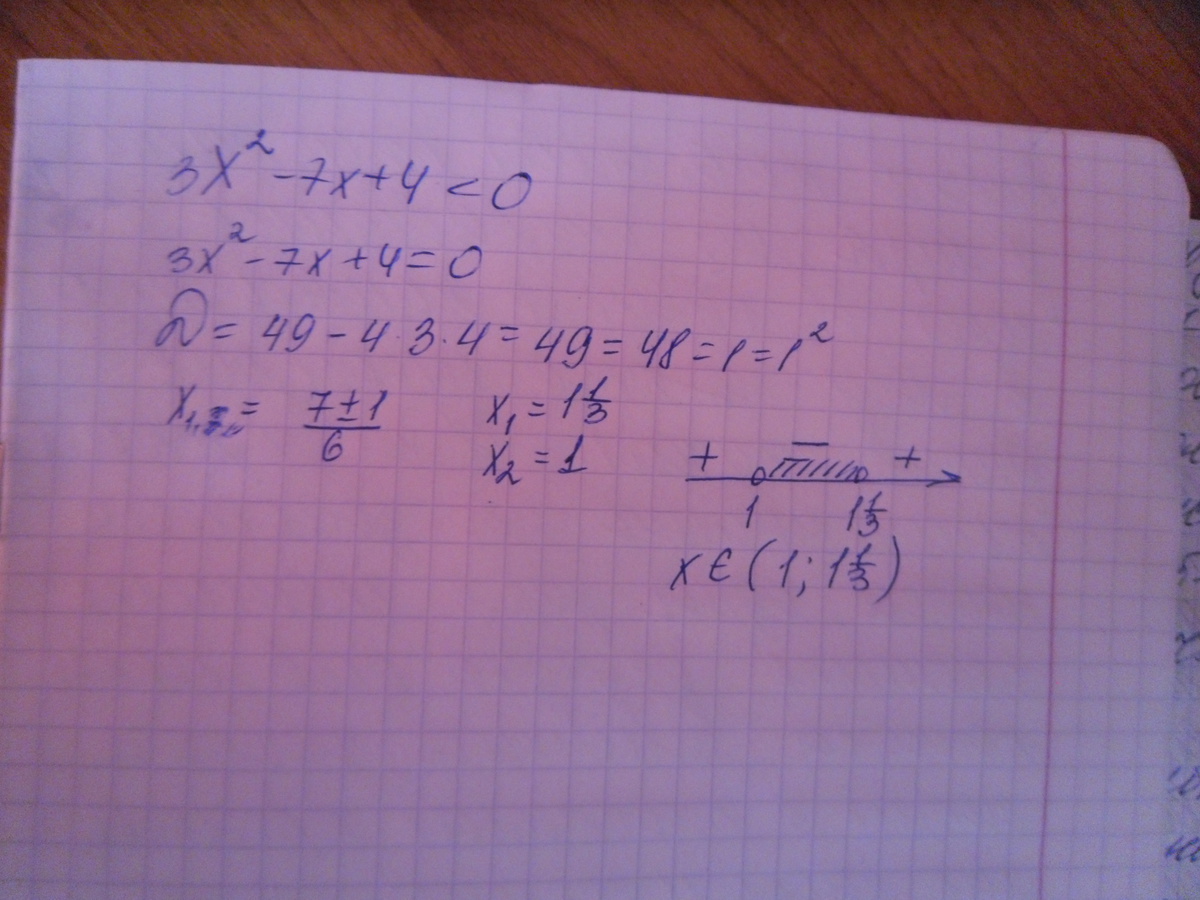 х₁=−b+√D/2a=−(−7)+1/2·3=8/6=4/3