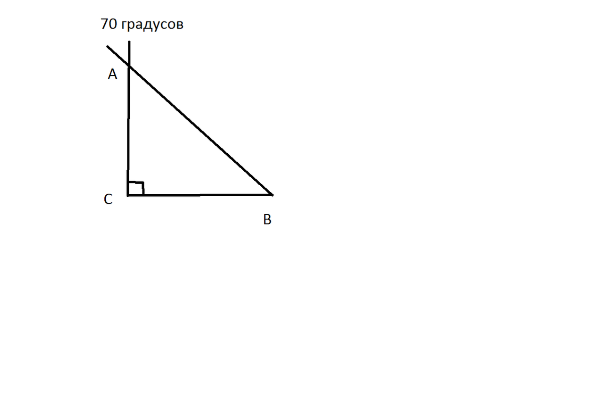угол АВС= 180(грд) - (АСВ+САВ) = 180 - (90+70) = 180 - 160 = 20