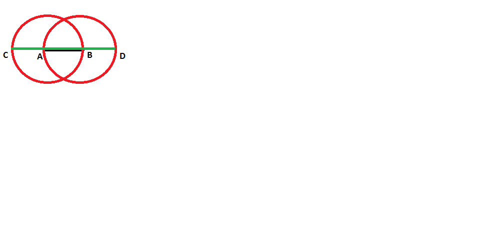 Начертите отрезок АВ .Проведите окружности с центрами в одних концах отрезка и проходящие через другие его концы. Продолжите отрезок АВ так, чтобы он пересек окружности еще в двух точках (С иД ). Во сколько раз отрезок СД больше отрезка АВ? Можно в фото