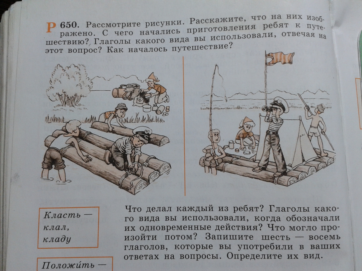 Расскажите, что на них изображено. С чего начались приготовления ребят к путешествию? В этот рассказ вставьте глаголы: построили, собрали, положили, связали, приготовили, принесли. Как началось путешествие? Что делал каждый из ребят? что могло произойти потом?