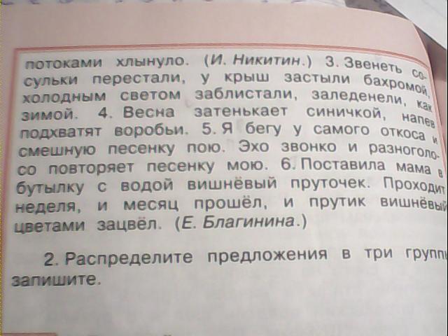 Выпиши сначала простые предложения с однородными членами,потом простые предложения без однородных членов,затем сложные предложения.