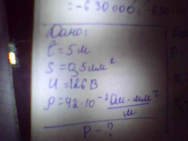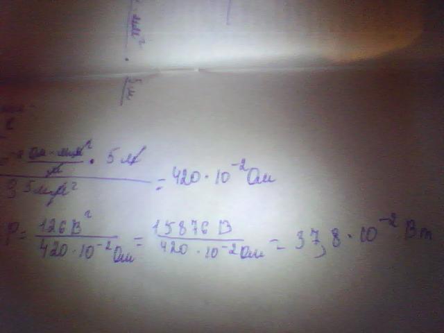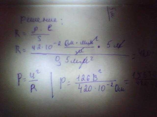 Никелионовая спираль длинной 5 м и площадь поперечного сечения 0.5мм(в квадрате) включена в сеть с напряжением 126В. Найдите мощность тока в спирали.