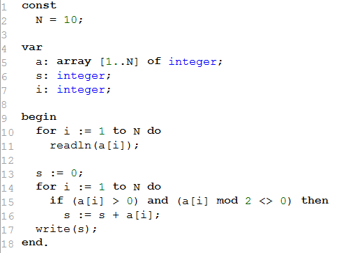 Вычислить сумму положительных нечетных элементов одномерного массива.
