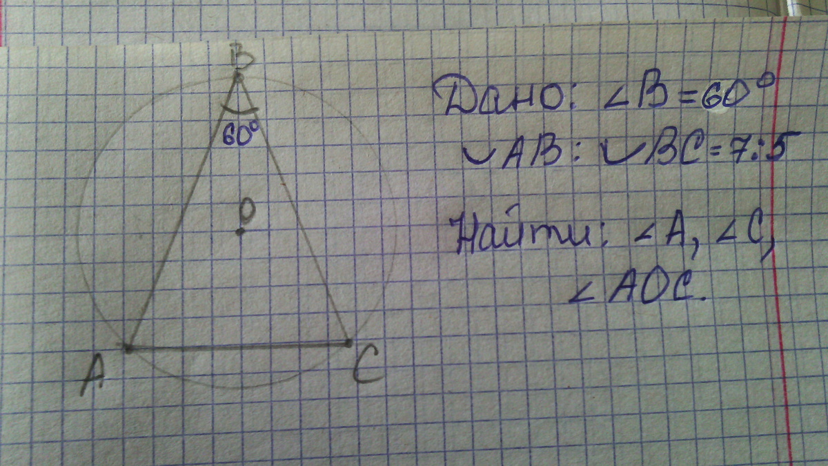 дуга АВ: дуга ВС= 7:5.
