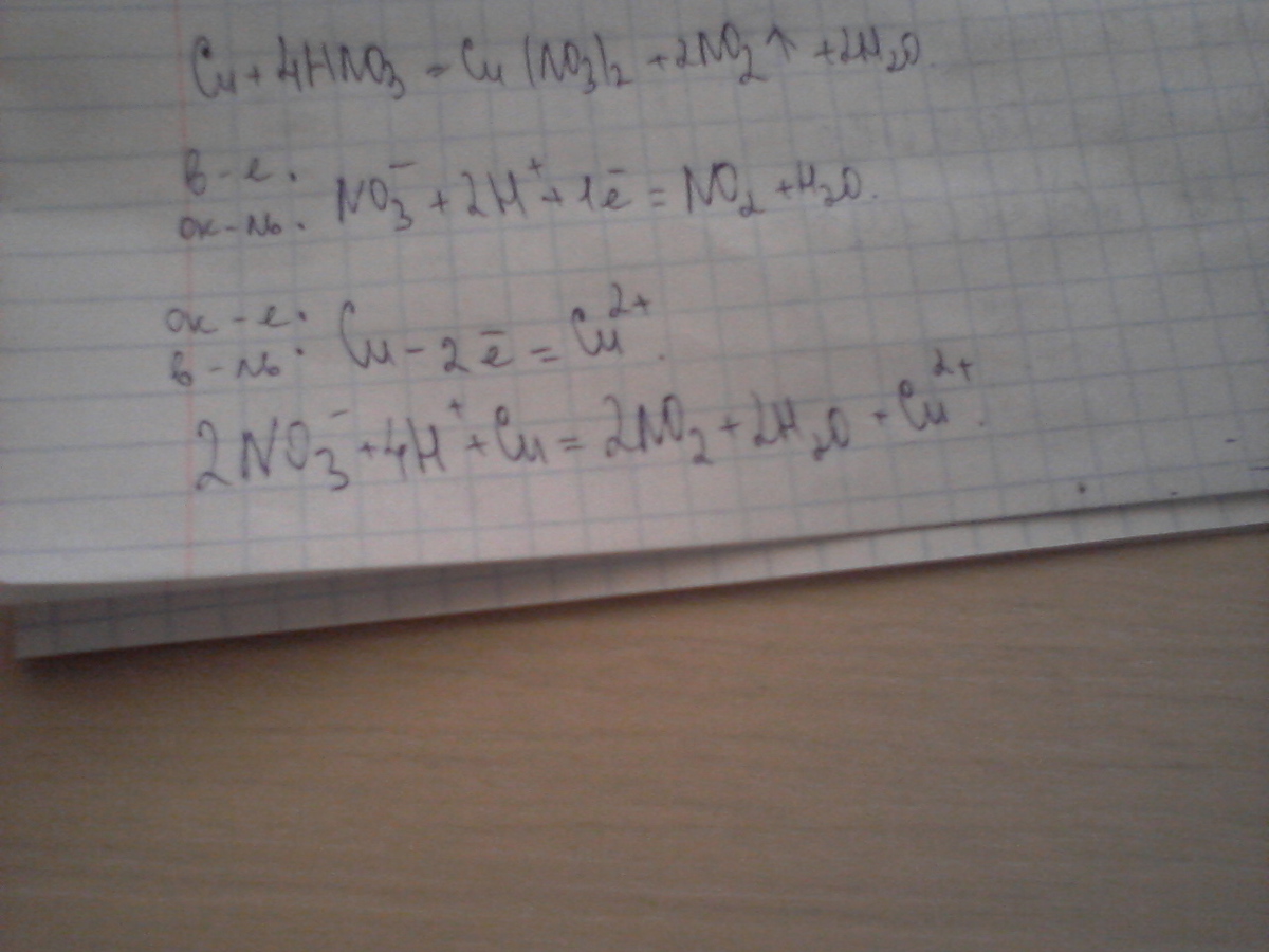 Cu+HNO3(конц)---->CU(NO3)2+NO2+H2O.