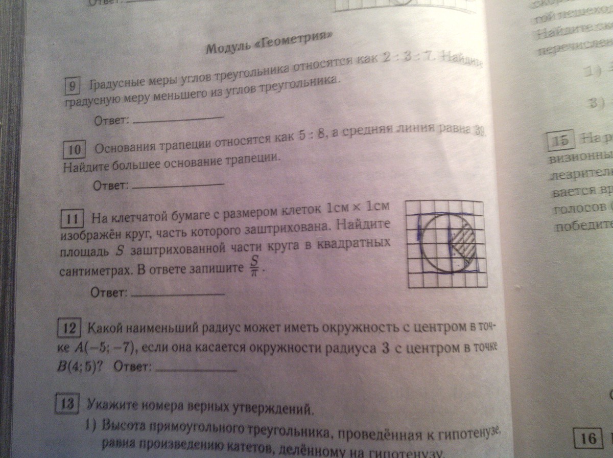 ответ площадь заштрихованного 3,14 ну и 12,56/п п равно на 3,14