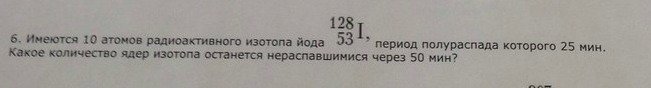N=N0/N=10/4=2,5( Половинка остаться не может) Проверьте значение числа атомов в начале, а сам подход к решению верен.