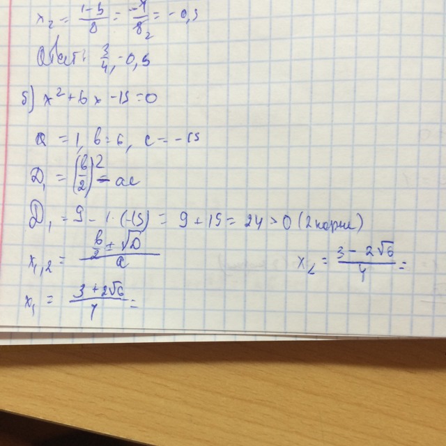 да, я уже вспомнила про четный коэффициент, но с ним столько путаницы. Просто если в задании прям указано, что при четном b решать через такой дискриминант, то окау, тогда вроде когда уже находишь х1 и х2, то там перед b/2 все равно должен быть минус ибо по сути решение с дискриминантом четного коэффициента это тоже самое, только идет замена b=2k, так что минус потерян, и делишь на 1. Ну тогда ответы совпадут.