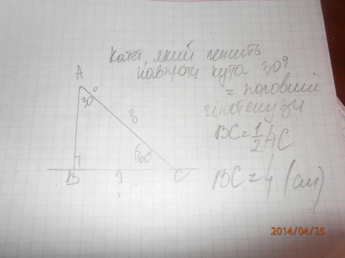 Из точки к прямой проведена наклонная длиной 8 см , образующая с прямой угол 60(грдусов). Найдите проекцию наклонной на прямую.