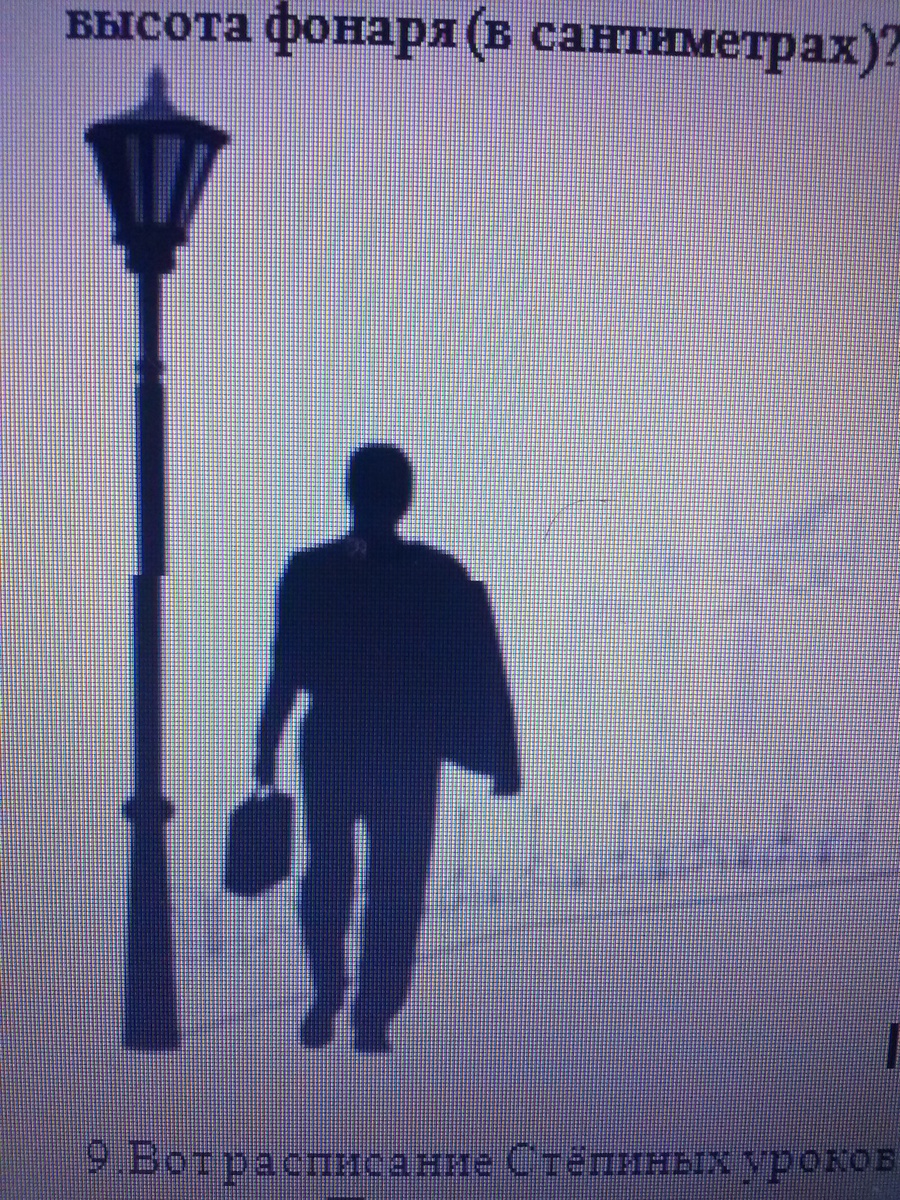 Рост человека, изабражённого на рисунке, равен 170 см. Какова примерная высота фонаря (в сантиметрах)?