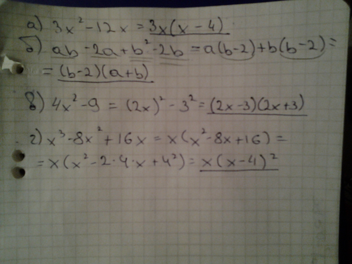 1. Разложите многочлен на множители, ребят срочно нужно. И пожалуйста как можно больше с объяснением. а)3x^2-12x