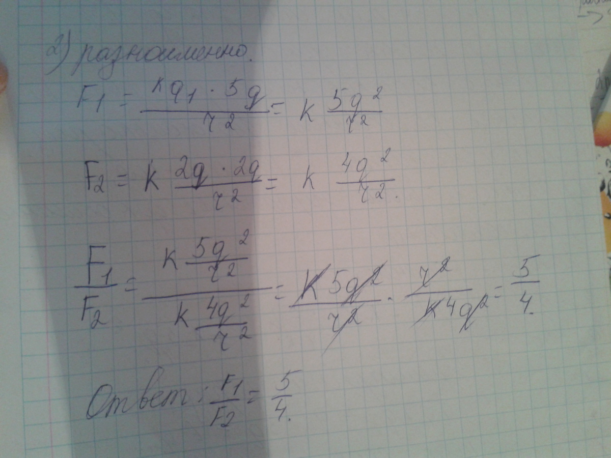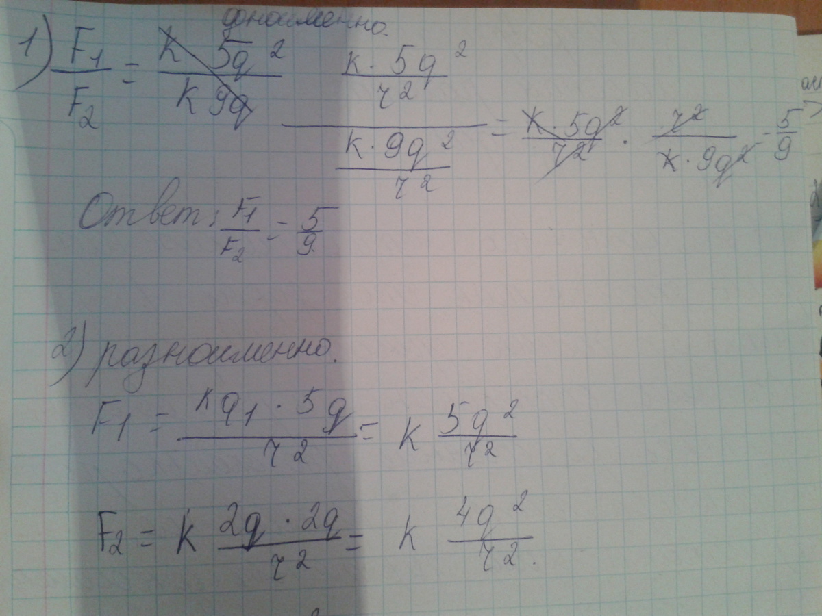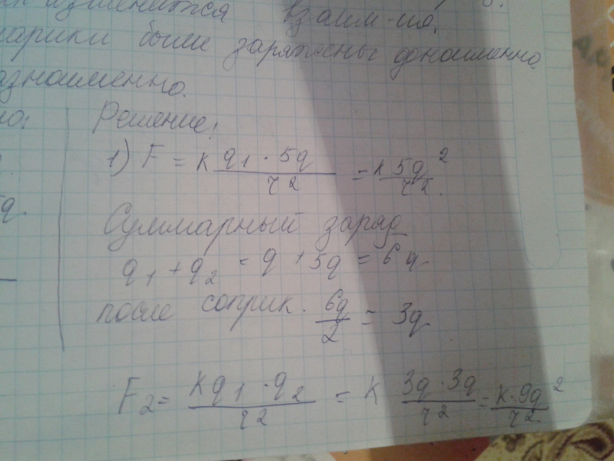 Два одинаковых металлических шарика заряжены так, что заряд одного из них в 5 раз больше другого.Шарики привели в соприкосновение и раздвинули на прежнее расстояние. Во сколько раз изменилась сила взаимодействия, если шарики были заряжены одноименно?