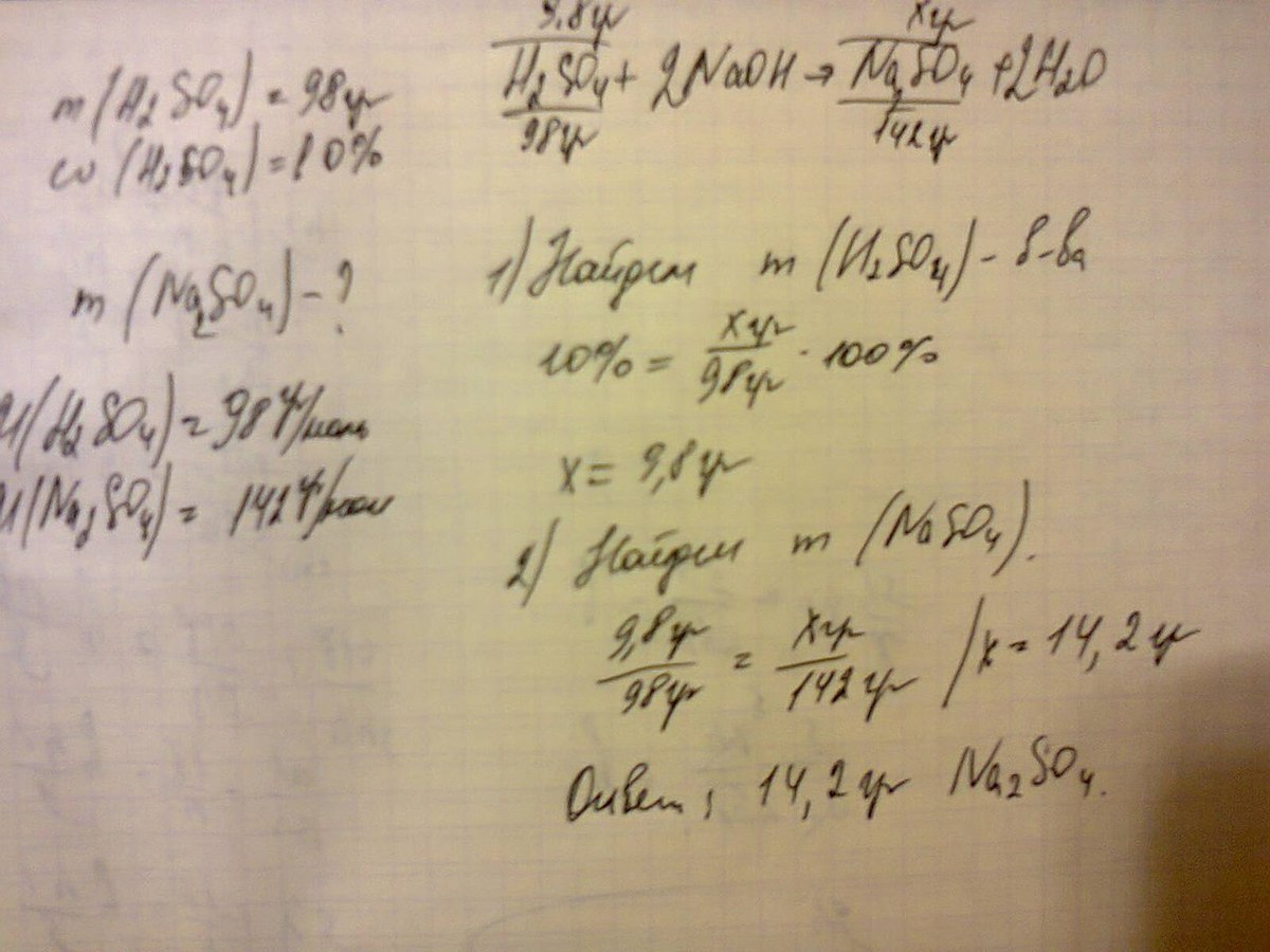 Сколько граммов соли образуется при взаимодействии 98г 10%-ного раствора H2SO4 с необходимым количеством NaOH