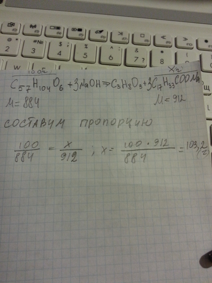 Триолеат + 3NaOH = C3H8O3 + 3С17Н33СООNa