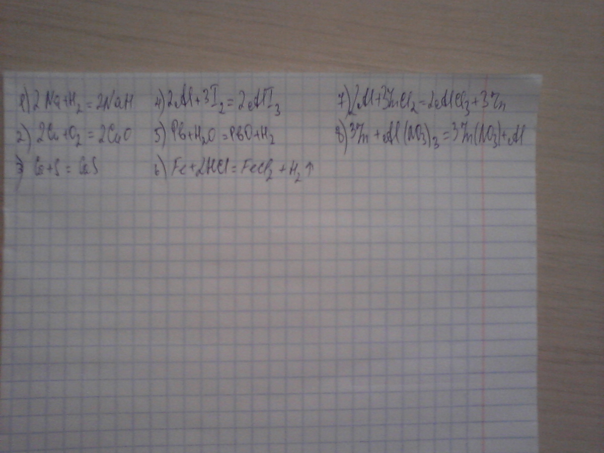 7) 2Al + 3ZnCl2 -> 2AlCl3 + 3Zn