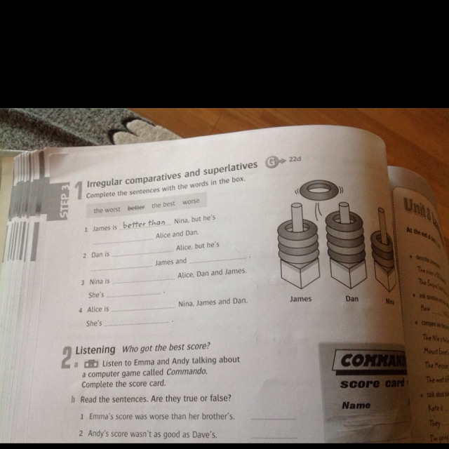 2. worse than better than James and Nina