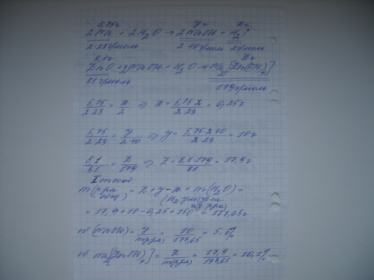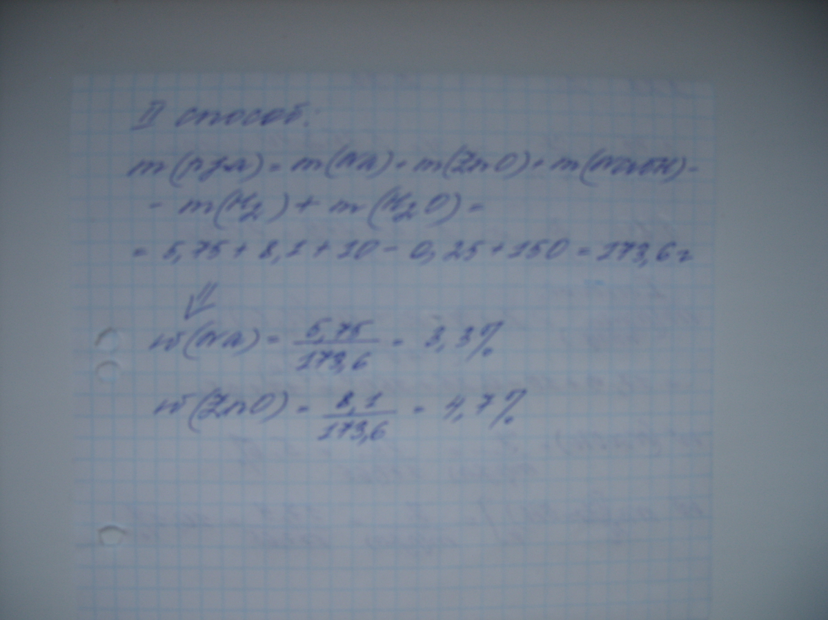 Определите массовую долю веществ в растворе, полученном в результате последовательного растворения в 150 мл. воды 5,75г. натрия и 8,1г. оксида цинка.