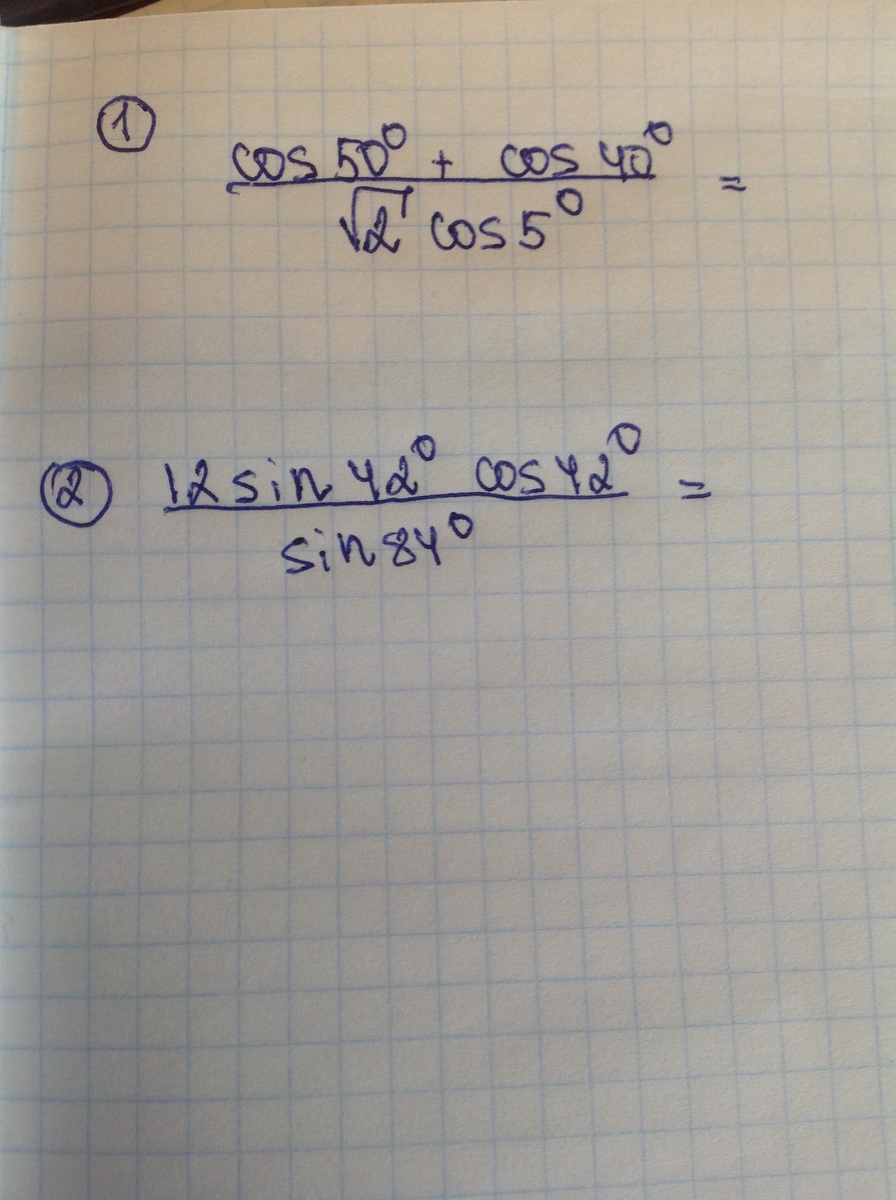 сos45 * cos 5 /корень(2)*cos5=cos 45 /корень(2)=(корень(2)/2) / корень(2)=0.5
