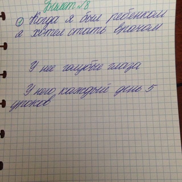 билет 8: I wanted to be a doctor, when I was a child. She has got blue eyes. He has 5 lessons every day.